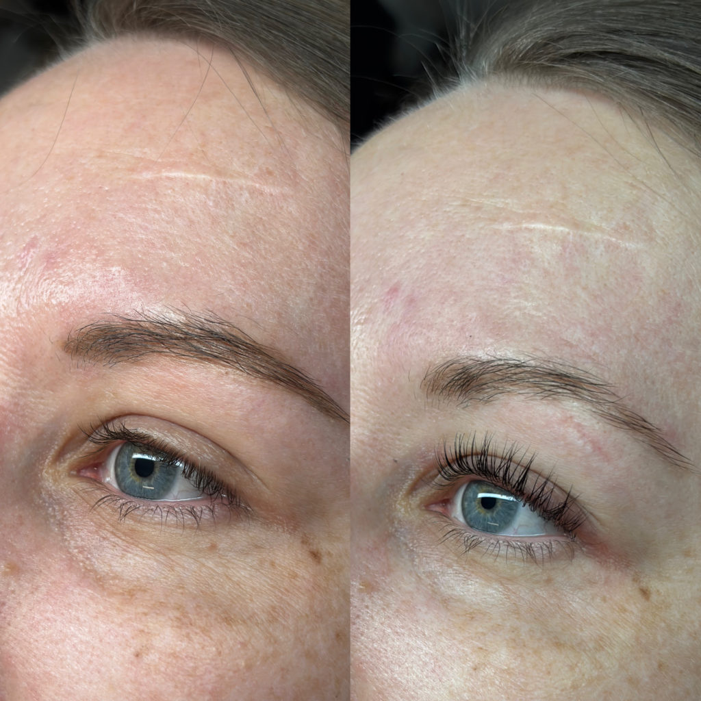 Possibilité d’ajouter la teinture pour intensifier le regard et obtenir un effet mascara naturel.